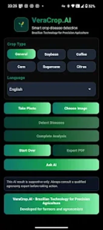 VeraCrop.AI vereist Android 15.0 en hoger. De huidige versie van het programma is 1.0.0, en je kunt het alleen in het Engels krijgen.